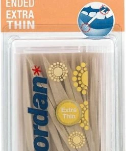 De Jordan Tandenstokers Extra Dun zijn speciaal ontworpen voor mensen met kleine tot zeer kleine ruimtes tussen de tanden en kiezen. De driehoekig gekante vorm zorgt voor extra goed bereik tussen de tanden. De tandenstokers zijn dubbel gekant, waardoor je beide uiteinden kunt gebruiken. De stokers bevatten mint en fluoride, voor optimale frisheid en reiniging. Ze zijn per 140 stuks verpakt in een wit transparante pocket pack.