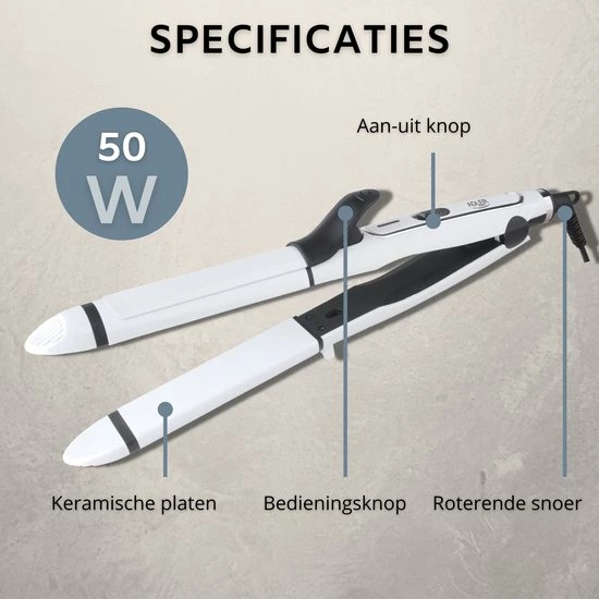 De stijltang heeft een vermogen van 50W waardoor de stijltang zelfs de meest krullende lokken effectief recht maakt .