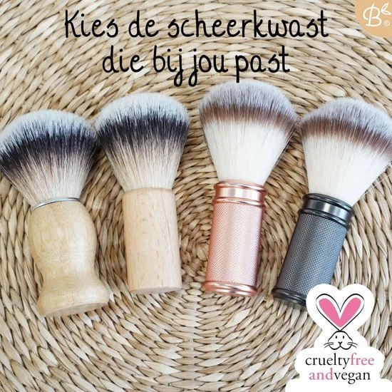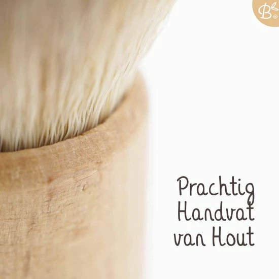 De scheerkwast heeft een houten greep voor een prachte natuurlijke look. De haartjes zijn vegan en bevatten geen dierlijke producten en is dierproefvrij.