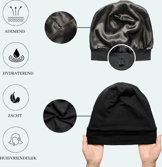 Ook klaar met warrig, droog en gebroken haar? Met onze BELLIVE® satijnen slaapmuts word je elke dag wakker met prachtige krullen. Met de duurzame elastische band blijft de slaapmuts netjes op zijn plaats. De slaapmuts is zacht, ademend, wasbaar en geschikt voor ieder haarlengte. De slaapmuts is universeel en geschikt voor ieder haartype. Dus als je ‘s ochtends wakker wordt, ziet je haar er net zo mooi uit als toen je naar bed ging!