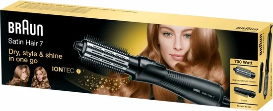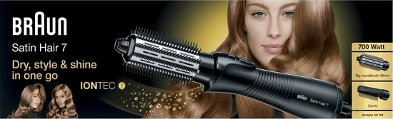 De Braun Satin Hair 7 IONTEC airstyler droogt je haar zacht en doeltreffend voor glanzend, mooi haar, elke dag. Ongeacht je kapsel of haartype, je kunt genieten van een grote variΓ«teit aan stijlen. Pas je look aan op je stemming: met de ultieme haarbescherming van Braun kun je er zeker van zijn dat je haar er net zo gezond uitziet als het voelt.