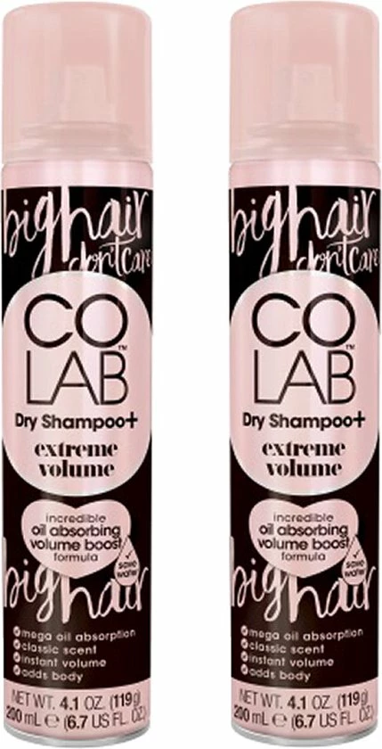 Colab Dry+ Shampoo Extra Volume conditioneert de haarwortels en geeft het haar direct meer volume en textuur. Het haar voelt meteen weer heerlijk fris aan. Big hair, don`t care!