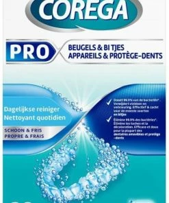 Corega Pro Beugels & Bitjes doodt 99,9% van de bacteriΓ«n die een slechte geur veroorzaken, het vermindert vlekken en verwijderend verkleuringen, zonder te krassen. Met Chrystal Clear technology: Crystal Clear-technologie reinigt effectief zonder te krassen en maakt het onderhoud van de beugel of bitje heel gemakkelijk. de Pro Beugels & bitjes anti-bacteriele reiniger is geschikt voor dagelijks gebruik.