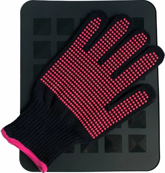 Let op: Dit product is een hulpmiddel bij het stijlen of krullen van het haar. De handschoen kunnen hoge temperaturen kort verdragen. Dus niet geschikt voor het langdurig vasthouden van een warme stijl- of krultang.