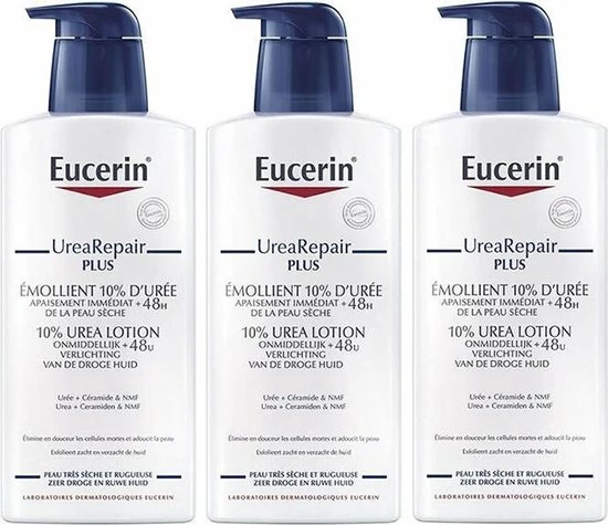 Eucerin Urea Repair Plus Lotion 10% Urea geeft de huid een zijdezacht gevoel, maakt de ruwe huid gladder en vermindert merkbaar het trekkerige gevoel. Bij regelmatig gebruik nemen de tekenen van de droge huid sterk af.