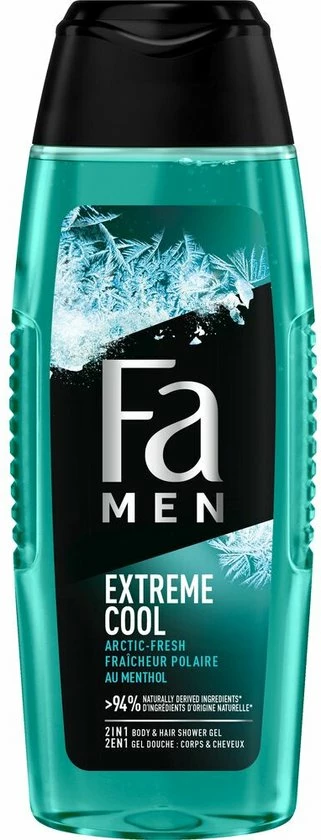 Ontdek Fa Men Extreme Cool 2 in 1 douchegel & shampoo met de geur van eucalyptus. De vegan formule bevat 94% ingrediënten van natuurlijke oorsprong (incl. water).