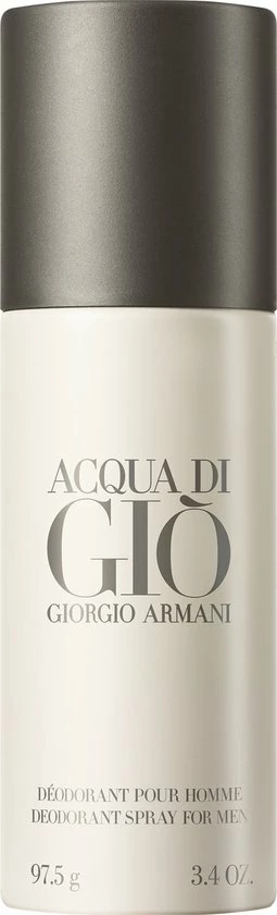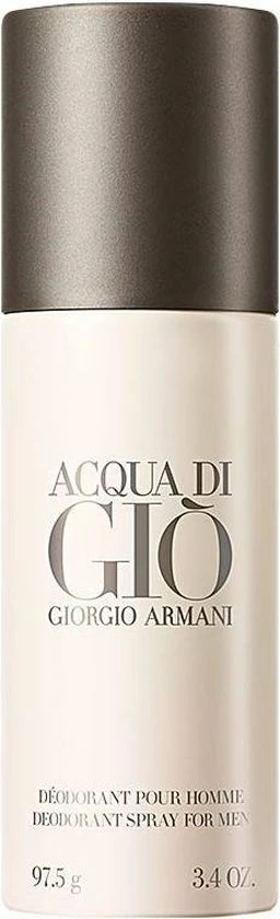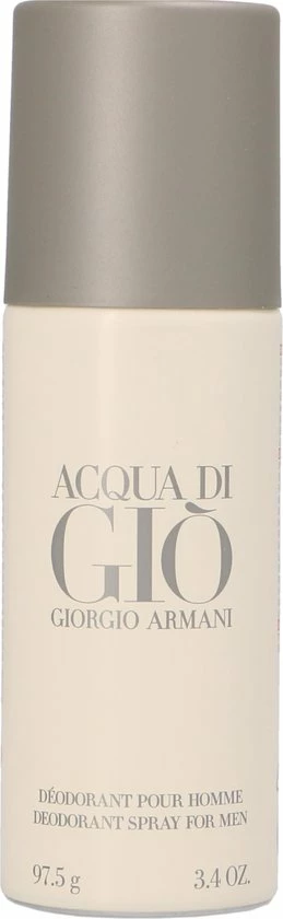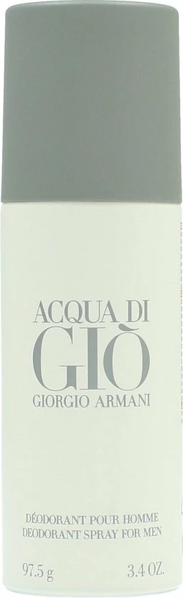 Acqua Di Giò Men deodorant is een spray voor maximale bescherming en comfort. Je huid ruikt licht naar Acqua Di Gio.In 1974 richtte de Italiaanse Giorgio Armani de modemerken Giorgio Armani en Emporio Armani op. Zijn imperium bestaat vandaag de dag onder andere uit luxe kleding, sieraden, make-up, horloges en zonnebrillen en parfums.