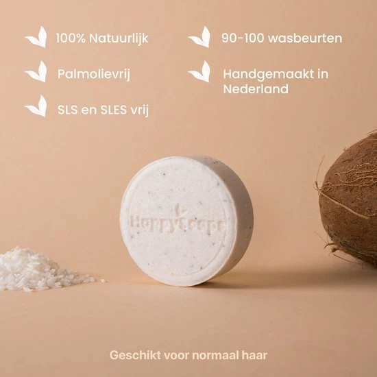 Met deze Shampoo Bar creΓ«er je in een handomdraai een heerlijk schuimende en plasticvrije reiniging voor je haar. De Bar ruikt intens naar kokos en is de perfecte geur voor je haren. Een boost voor je vrolijkheid! De quinoa geeft je haar natuurlijke verzorging. Daarnaast bevat de Bar shea butter en olijfolie voor een verzachtende en verzorgende werking.