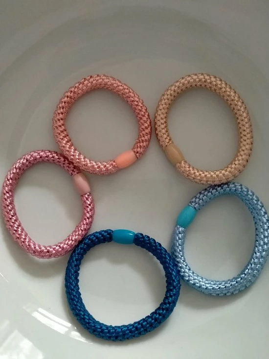 Deze leuke haarelastiekjes in het lichtblauw, donkerblauw, lichtroze, donkerroze en beige. Ook verkrijgbaar in 5 andere kleuren.