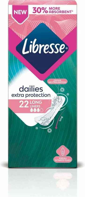 Van druppels tot intiem vocht met welke kleur dan ook – spotting, afscheiding of urineβ¦verzin het maar. Wat er ook gebeurt, onze Dailies Extra Protection inlegkruisjes kunnen alles aan en geven je een fris gevoel. Ze zijn daarom ook wel onze superheld onder de inlegkruisjes. Ze absorberen maar liefst 30%* meer vocht en dat maakt deze inlegkruisjes ook urine opnemen, en niet alleen afscheiding of spotting.