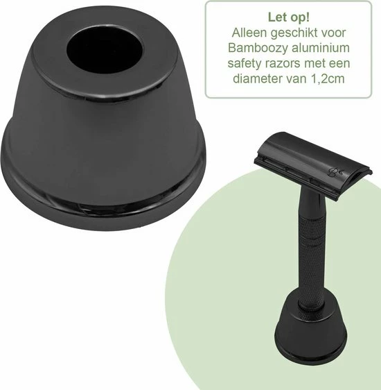 Let op! Deze houder is alleen geschikt voor de dikke aluminium safety razors met een handvat diameter van 1,2cm en past niet op de Bamboozy metalen RVS safety razor.