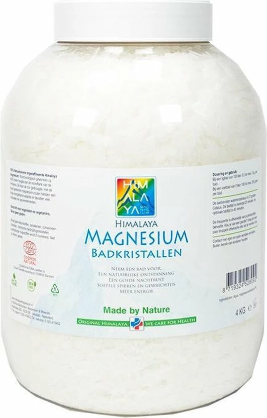 Himalaya magnesium vlokken bestaat uit 47% natuurlijke ongeraffineerde magnesiumchloride met zuiver bronwater uit het Himalaya gebergte. Himalaya magnesium vlokken/badkristallen zijn 100% natuurlijk, zeer zuiver en een weldaad voor je lijf. Te gebruiken in een ontspannen voetbad of een heerlijk ligbad. Terwijl je ontspant verhoog je je magnesiumgehalte. Himalaya magnesium bevat minstens 30 gram elementair magnesium per 250 gram.