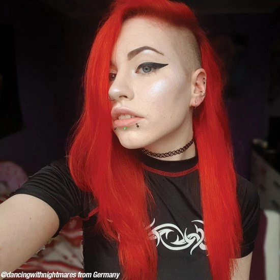 Pillarbox Red is our signature true red hair dye. This βfire engine redβ looks great on everyone and can leave brilliant red tones on virgin, unbleached hair! For best results, we recommend lightening hair to a light level 8 blonde before use