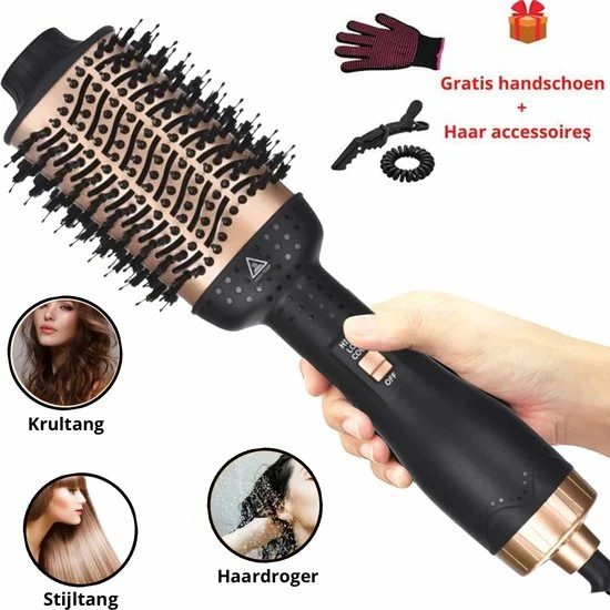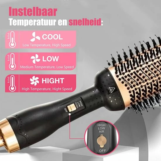 Nieuwe model:All-in-one haardroger (haardroger, stijltang, haarkam, krulborstel, massagekam). Krullend glad haar en droog haar kunnen vrij worden gebruikt om je haar golvend of glad te maken. Presenteer in korte tijd verschillende stijlen.