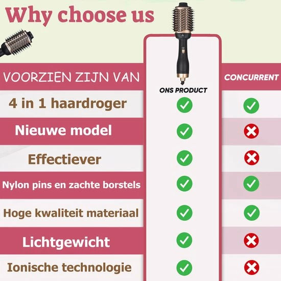- Geschikt voor: Drogen, stijlen, kammen, stylen, creëren van volume/slag