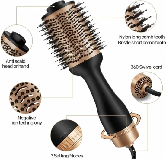 stijl en fΓΆhn je haar tegelijkertijd ,daarom het ideaal items voor s’ochtend. geen geduld meer met de borstel in de ene hand en de fΓΆhn in de andere hand . prachtig haar zonder moeite en s’ochten tijd te verliezen.