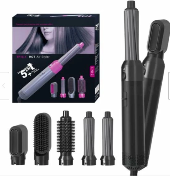 Bent u op zoek naar de perfecte alles in één multistyler? Met onze krachtige 5 in 1 multistyler bespaart u veel tijd en kunt u uw haar op een perfecte manier stylen, borstelen en nog veel meer! Door deze handige multistyler kunt u uw haar niet beschadigen. Wat met een normale krultang wel vaak het geval is.