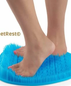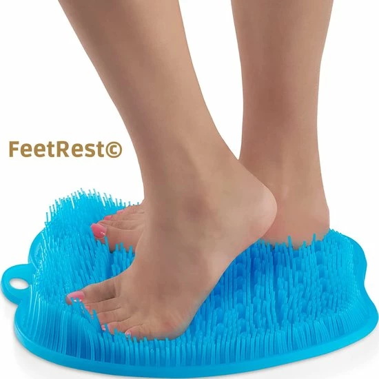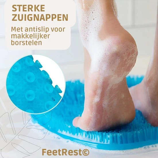 FeetRestΒ© Voetscrubber – Voetborstel – Voetmassage Apparaat Bloedsomloop – Douchemat – Schone Voeten – Voetenbad Voor in Bad en Douche – Ex foliΓ«rende Werking – Met Zuignappen – Donkerblauw