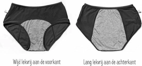 De onderbroek heeft verschillende lagen bij het kruis wat vocht absorbeert en tegenhoudt zodat het geheel lekvrij is. Na gebruik even uitspelen met koud water en vervolgens wassen op 30 graden in wasmachine. Liever niet in de droger en geen wasverzachter gebruiken, dit heeft invloed op het absorberend vermogen.
