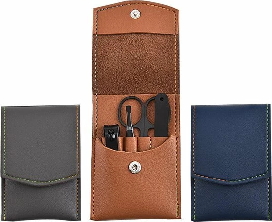 Bent u opzoek naar een luxe manicure/pedicure set? Dan bent u bij ons aan het juiste adres. Deze 4-delige set biedt u alles wat u nodig heeft op het gebied van hand en voet verzorging. Alle items zijn van staal en zitten in een donkergrijze PU lederen etui. Doordat de manicure set erg compact is, dient het ook makkelijk gebruikt te worden als reisproduct.