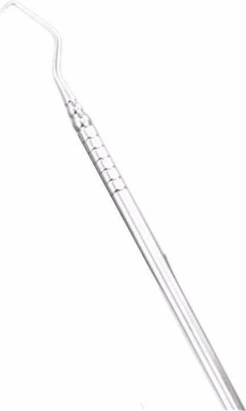 Deze premium tandarts mondhaak is gegoten uit duurzaam en corrosie bestendig RVS. Met dit instrument voelt de tandarts in de ruimte tussen het tandvlees en de gebitselementen. Ze voelen of er tandsteen zit, of de ruimte niet te diep is en om te kijken of het tandvlees niet bloedt.