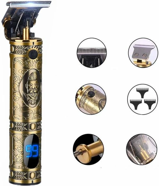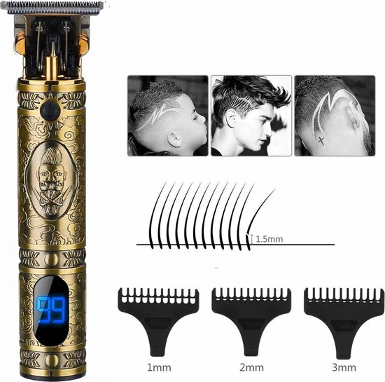 - Scherpe T-Blades: Titanium precisie-mesjes, blijven langer scherp om alle haartypes te knippen, soepel knippen zonder vast te zitten haar, nauw snijdend koolstofstalen T-mes voor voering, ontwerpen en droog scheren.