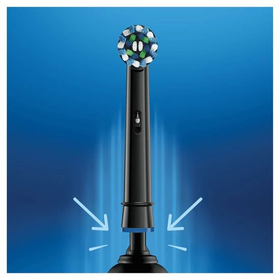 De zwarte CrossAction opzetborstel past perfect bij je zwarte Genius-handvat en is een echte blikvanger in je badkamer in het premium design.
