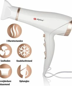 Beste deal ⭐ Alpina Haardroger – Föhn – 1900-2300 Watt – 3 Warmtestanden – 2 Snelheden – Coolshot – Wit En Rosé Goud 🎉