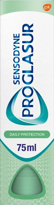 Sensodyne ProGlasur Daily Protection is speciaal ontwikkeld om je tandglazuur te verharden en je tanden te helpen beschermen tegen tanderosie. Proglasur helpt het door zuur zacht geworden tandglazuur weer hard te maken waardoor het beter bestand is tegen nieuwe zuurmomenten. Proglasur biedt alles wat je van een dagelijkse tandpasta verwacht, het geeft een fris gevoel, helpt beschermen tegen cariΓ«s, heeft een laag-schurende werking en een neutrale pH.