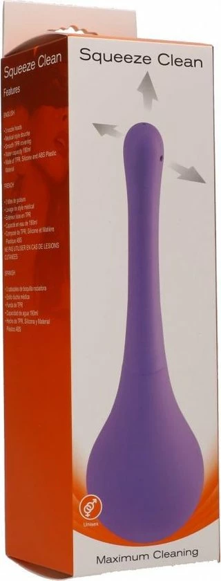 This Squeeze Clean douche has a smooth TPR covering and has three small openings for the water to exit. The water capacity is 190 ml and it’s a medical style douche.
