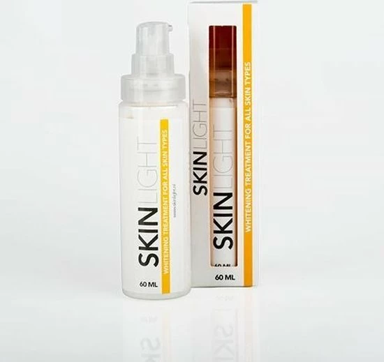Skinlight huidbleekcrΓ¨me (100% natuurlijk, PH Neutraal en Parfumvrij) – Gebruik Skinlight voor het verlichten en bleken van je huid. Skinlight whitening cream is geschikt voor alle huidtypes en veilig in gebruik. Door de unieke 100% natuurlijke bestanddelen werkt het zeer doeltreffend, zonder je huid aan te tasten. Doordat Skinlight whitening treatment verrijkt is met heerlijke oliΓ«n en Vitamine C houdt het je huid tevens soepel en zacht. Afhankelijk van het te behandelen oppervlak doe je met 60ml circa 1 a 2 maanden bij 2x daags gebruik.