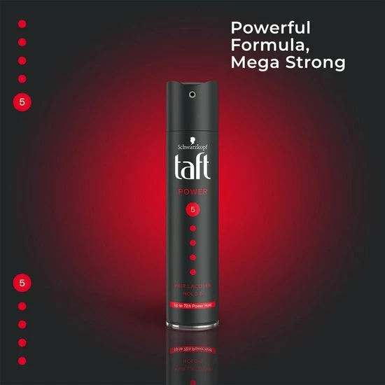 Taft Power Styling haarlak geeft 72 uur lange power hold. Het versterkt en beschermt je haar tot in het kleinste detail, zodat je er zeker van kunt zijn dat je haar op elk moment van de dag goed zit.