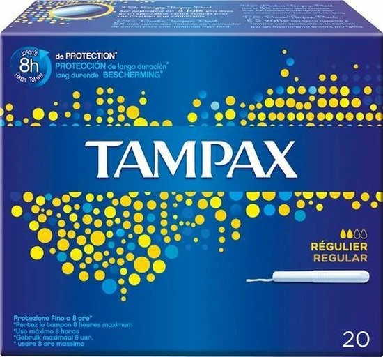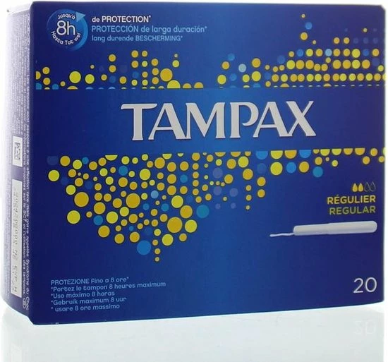 De Tampax Regular tampons met kartonnen inbrenghuls helpen u schoon en zelfverzekerd te voelen. Ze zijn vrij van geur- en kleurstoffen. Tampax tampons hebben een absorberende kern en een protective skirt voor extra bescherming; hun kartonnen inbrenghuls heeft een anti-slipgrip zodat u hem makkelijk kunt inbrengen. De Tampax Regular tampons met kartonnen inbrenghuls zijn bedoeld voor dagen met een lichte tot gemiddelde menstruatie. Tampax tampons zijn getest door gynaecologen. Voel je schoon en zelfverzekerd. Probeer Tampax Pearl Compak, de beste bescherming in het Tampax-assortiment. Ga naar de website van Tampax voor meer informatie over de producten.