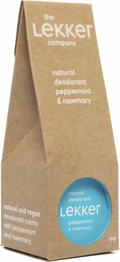 the lekker company natuurlijk en vegan deodorant met pepermunt & rozemarijn geur.