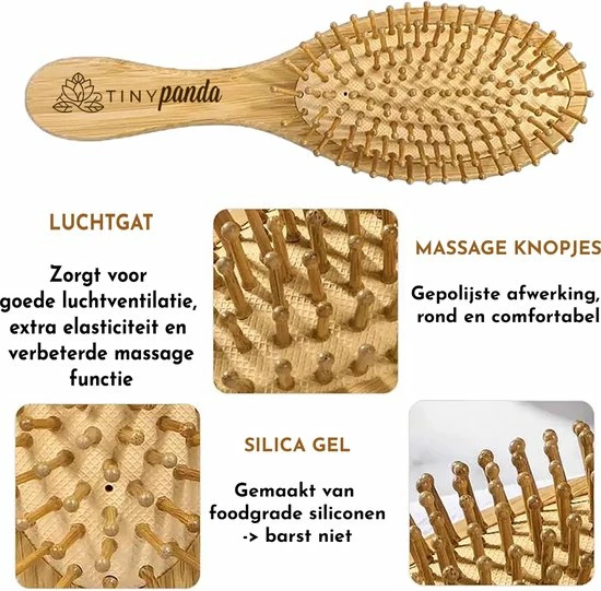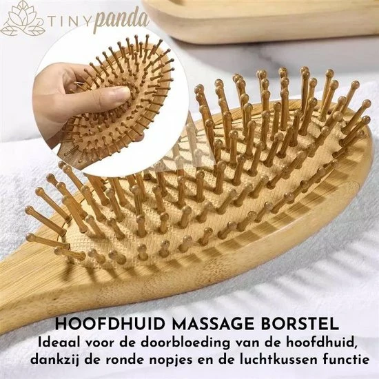- Minder haaruitval; door de nopjes en het bamboe / houten materiaal.